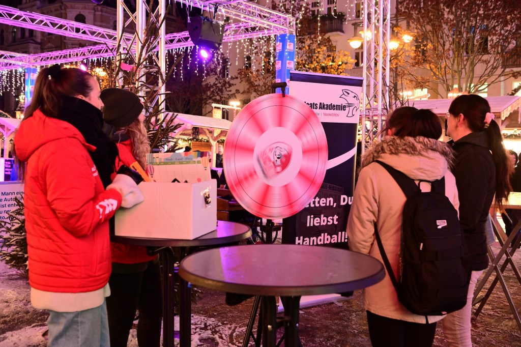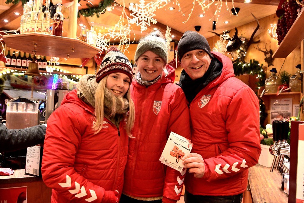 An vier Standorten auf dem Weihnachtsmarkt konnte man gestern die Spielerinnen der Handball Bundesliga vom SV Union Halle Neustadt live erleben. Auf dem Hallmarkt, unmittelbar neben der Eisbahn wurden Preise verlost, unter anderem Freikarten für eines der nächsten Heimspiele. Auf dem Obermarkt wurde von den WildCats reichlich Glühwein ausgeschenkt und WildCats-Coupons ausgegeben, mit denen man bei den Heimspielen 50% des Eintrittspreises sparen kann. Außerdem sind Autogramme und Fotos von der Mannschaft erhältlich.