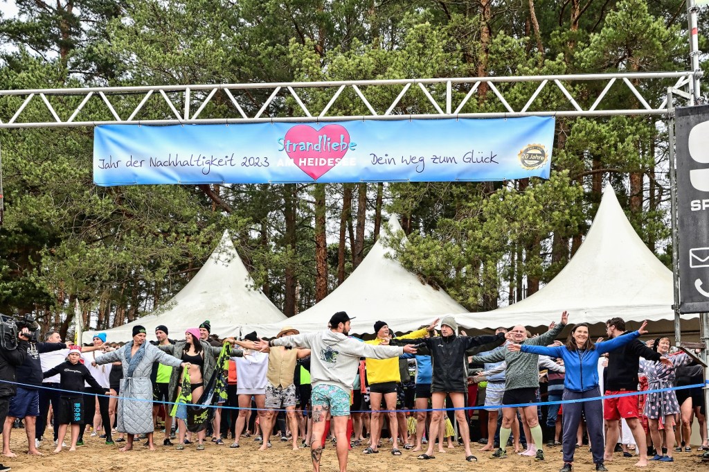 Pünktlich um 11:00 Uhr hatten sich die mutigen Männer, Frauen und Kinder am Startpunkt zum 11. Neujahrsschwimmen eingefunden. Alle Altersklassen von ca. 8 bis 70 haben es gewagt, die vorgegebene Strecke zwischen Ufer und dem Zielpunkt im Wasser bei 3 Grad Wassertemperatur zu bewältigen. Bevor es ins eiskalte Wasser am Heidesee ging, hieß es erst mal richtig Aufwärmen. Außerdem hatten sich mehrere hundert Zuschauer eingefunden. Eingeladen zum Neujahrsschwimmen hatte der Betreiber des Freibades, Mathias Nobel, der auch selbst am Schwimmen teilnahm. Unterstützt wurde er von vielen freiwilligen Helfern, dem DLRG und der Freiwilligen Feuerwehr Nietleben.Der offizielle Start erfolgte durch den derzeit suspendierten Oberbürgermeister der Stadt (Saale), Dr. Bernd Wiegand.