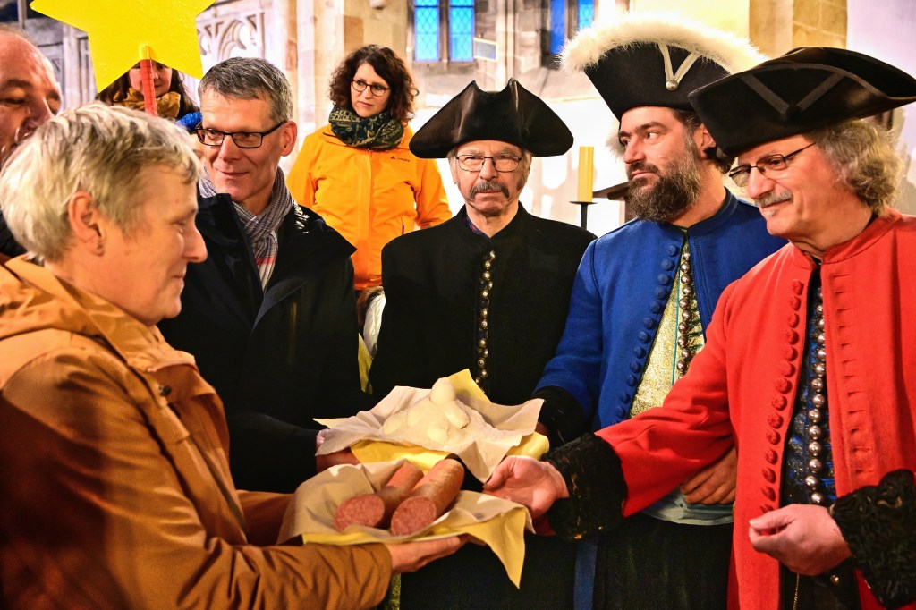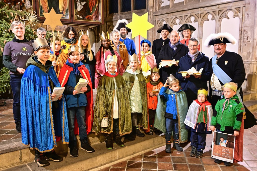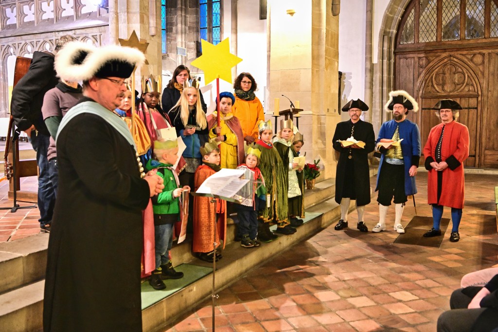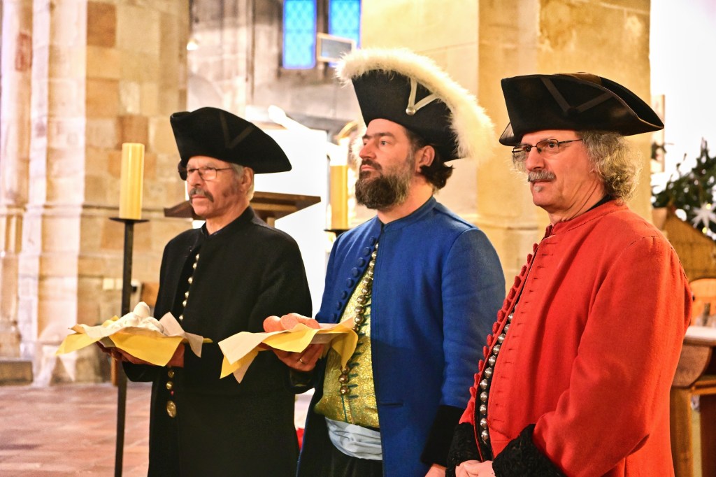 Wie im vergangenen Jahr gab es auch heute in der Moritzkirche einen gemeinsamen Empfang der SalzwirkerBrüderschaft und der Sternsinger mit dem Bürgermeister der Stadt Halle (Saale). Traditionsgemäß überbrachten die Halloren ihre Neujahrsgaben, Salz, Soleier und Schlackwurst. Die Sternensinger stellten ihre diesjährige Spendenaktion vor. Mit dem Leitspruch „Kinder stärken, Kinder schützen“ in Indonesien und weltweit wollen die Sternsinger auf Gewalt gegen Kinder aufmerksam machen. Außerdem sammeln sie für Not leidende Kinder in aller Welt, denn Gesundheit ist ein Kinderrecht.