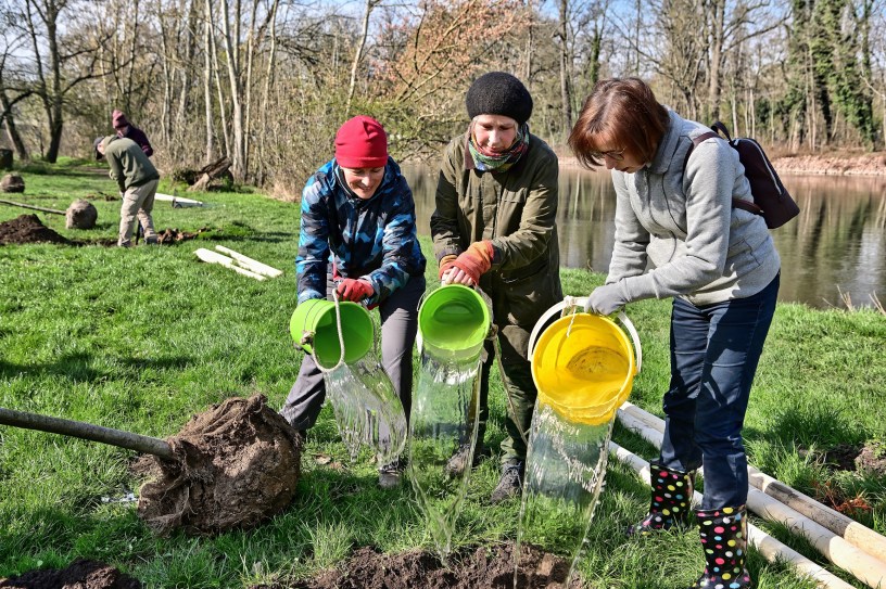 Drei neue Bäume am Saalestrand.