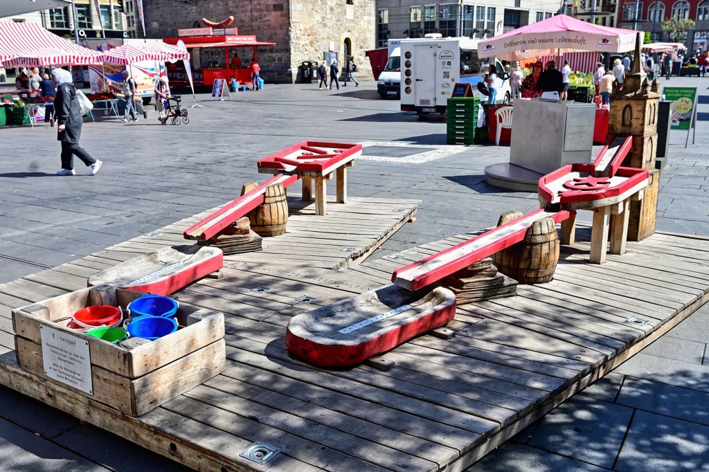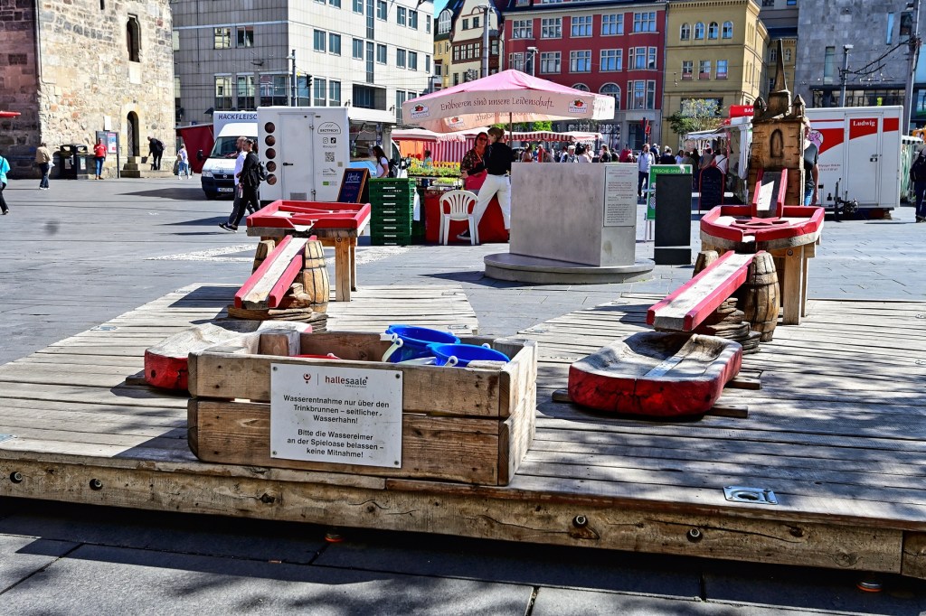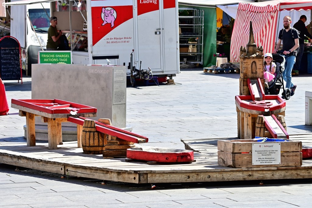 Die Inbetriebnahme des Wasserspiels auf dem Marktplatz ist für den 1. Juni geplant. Die Anlage wird nach 2019 bereits zum zweiten Mal montiert. Perspektivisch ist für die Westseite des Platzes eine deutliche Vergrößerung und Neugestaltung der Brunnenanlage geplant. Dann soll auch ein bespielbares, interaktives Wasserspiel entstehen, das neben ebenerdigen Fontänen-Feldern auch Möglichkeiten zum Fördern, Lenken und Bewegen von Wasser bietet. Durch begrünte und beschattete Sitzbereiche sollen auch zusätzliche Aufenthaltsmöglichkeiten für Jedermann geschaffen werden. Grundlage der Gestaltung bildet das im Januar 2023 vom Stadtrat beschlossene Freiraum- und Begrünungskonzept Altstadt.