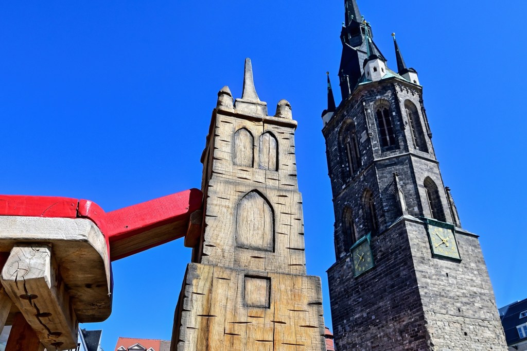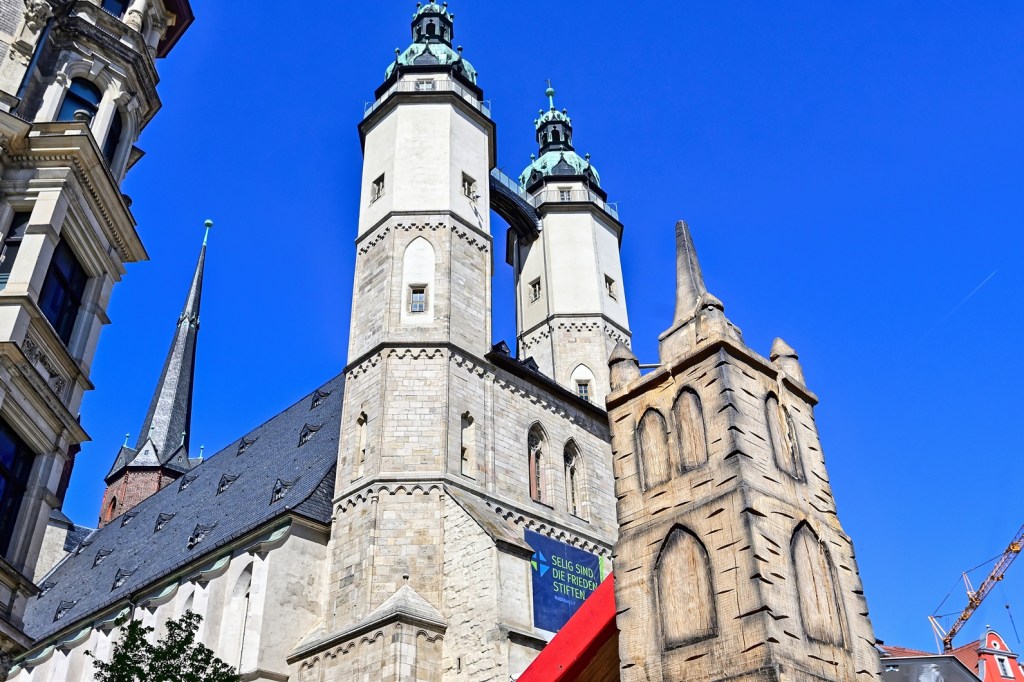 Halle wird auch als Stadt der fünf Türme bezeichnet. Ab morgen kommt noch ein kleiner dazu, der den Vergleich mit den bereits stehenden nicht scheuen muss. Man muss es nur aus der „richtigen Perspektive“ betrachten.