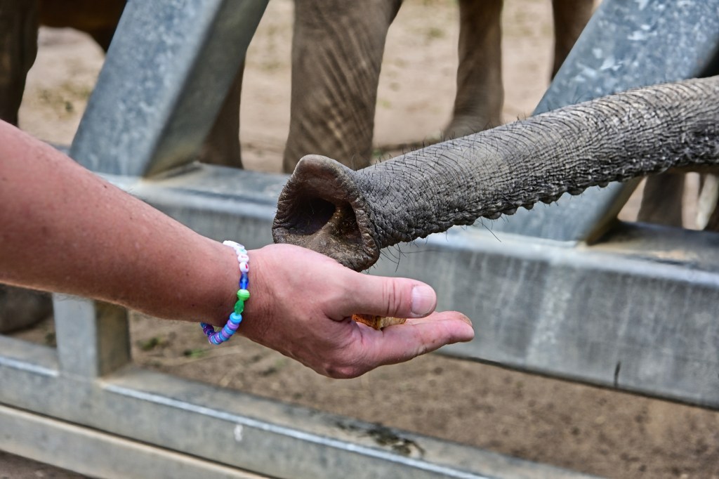 Tamika wird die menschliche Sprache nicht verstehen, aber die „Leckerli“ sind sicher allen 3 Elefanten willkommen, die bei der Verlängerung der Patenschaft dabei sein durften. Und dann ging es zum Baden.