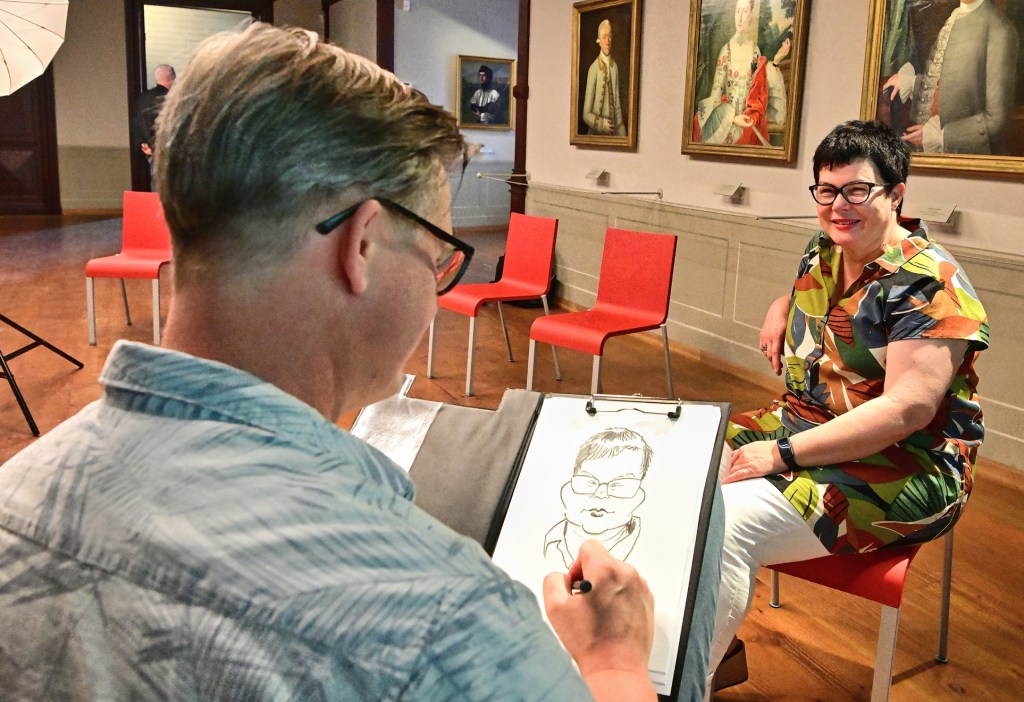 Während des Pressegesprächs hat Thomas Leibe live eine weitere Karikatur gezeichnet, wobei Jane Unger gleich mal dafür zur Verfügung stand.