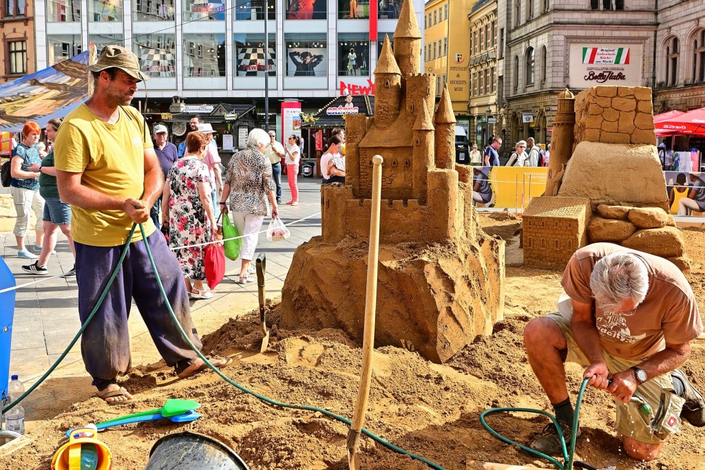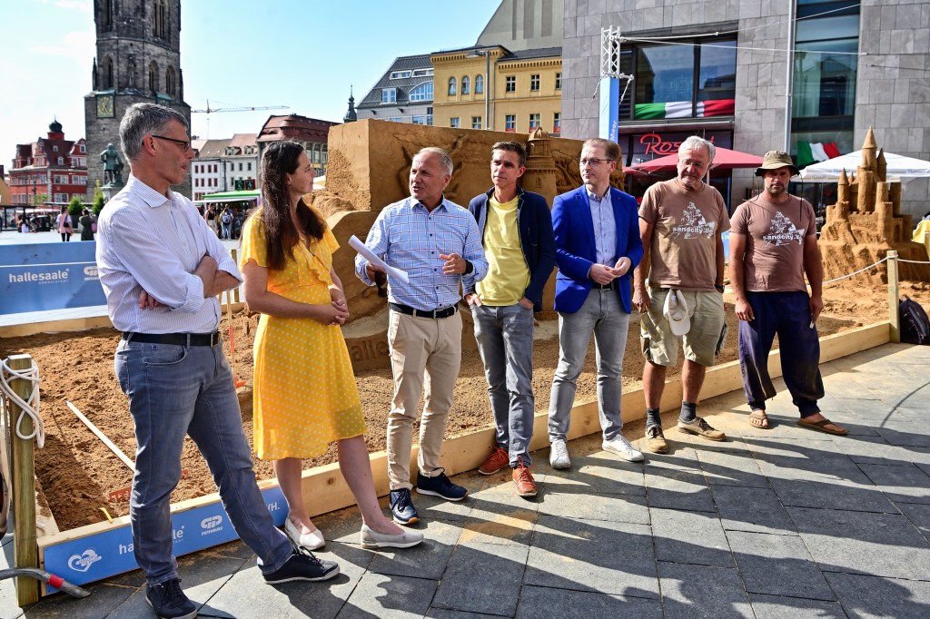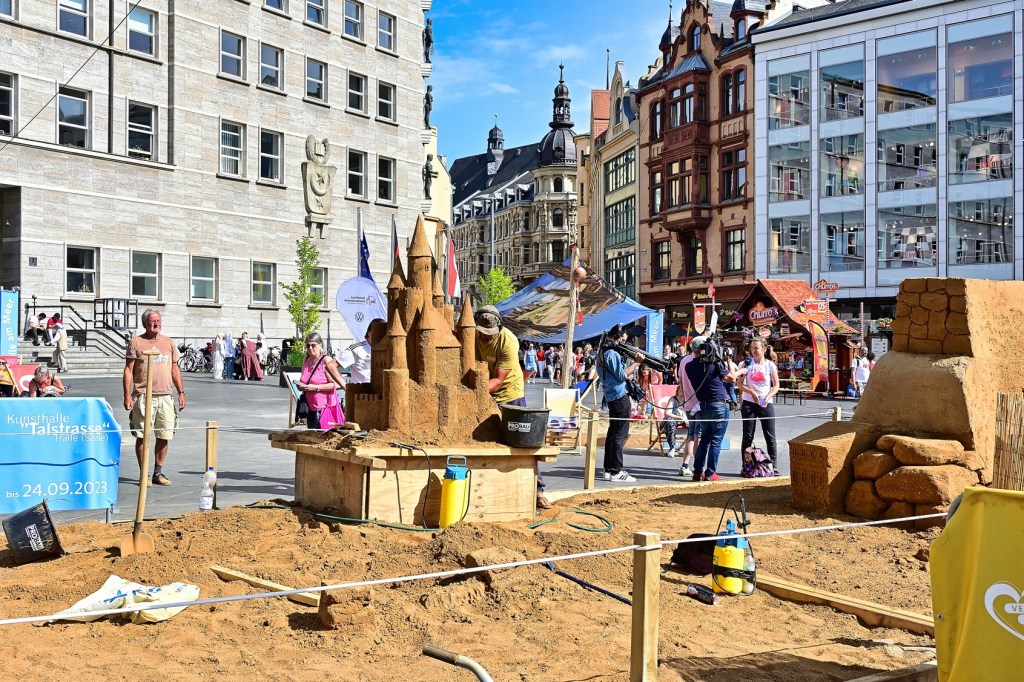 Unter einem strahlend blauen Himmel wurde gestern auf dem Marktplatz von Halle ein außergewöhnliches Kunstspektakel eröffnet – die beeindruckenden Sandskulpturen, die in den letzten Tagen von den talentierten Sandkünstlern der Firma SandCity, Benno Lindel und Jan Zelinka, geschaffen wurden. Viele Passanten und Kunstinteressierte hatten sich versammelt, um die feierliche Eröffnung und Einweihung der eindrucksvollen Sandkunstwerke zu erleben.