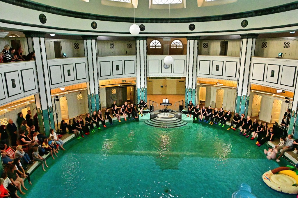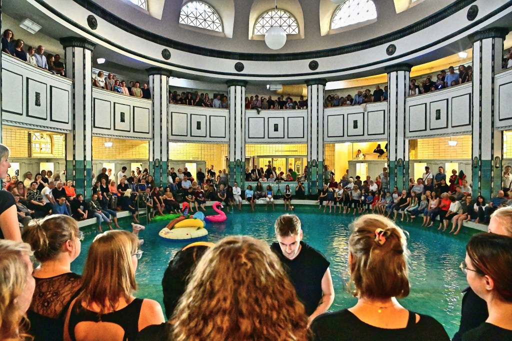Heute am 7. Oktober 2023 wurde in der historischen Frauenhalle des Stadtbades in Halle an der Saale ein ganz besonderes Jubiläumskonzert gefeiert. Der Popchor „Klangdusche“ unter der Leitung von Maximilian Olschwewski blickt auf fünf erfolgreiche Jahre zurück und hat sich dafür entschieden, dieses Ereignis mit einem außergewöhnlichen Konzert an einem ebenso außergewöhnlichen Ort zu feiern.
