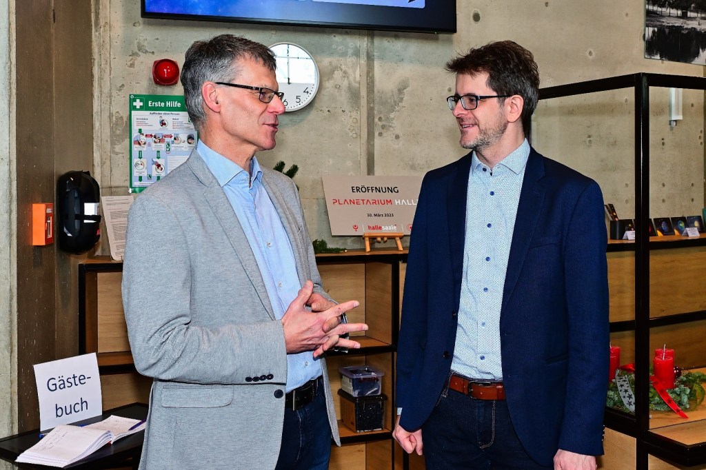 Halle, 18. März 2023 – Vor neun Monaten öffnete das Planetarium auf dem Holzplatz in Halle seine Tore im historischen Gasometer nach umfangreichen Bauarbeiten. Die Resonanz auf diese einzigartige Bildungseinrichtung war von Anfang an überwältigend. Anlässlich des Jubiläums fand heute im Sternensaal ein Pressegespräch mit dem Planetariumsleiter Dirk Schlesier und Bürgermeister Egbert Geier statt, bei dem eine positive Bilanz gezogen wurde.