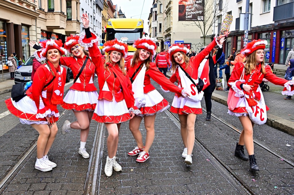 Die Bräuche der fünften Jahreszeit markieren den Übergang zur Fastenzeit, die mit dem Aschermittwoch beginnt und auf das Osterfest vorbereitet. Der Rosenmontag, traditionell einer der Höhepunkte des Karnevals, wurde auch in Halle gebührend gefeiert. Schaulustige säumten die Straßen, um dem farbenfrohen Umzug beizuwohnen, und viele von ihnen hatten sich selbst in lustige und kreative Kostüme gehüllt.