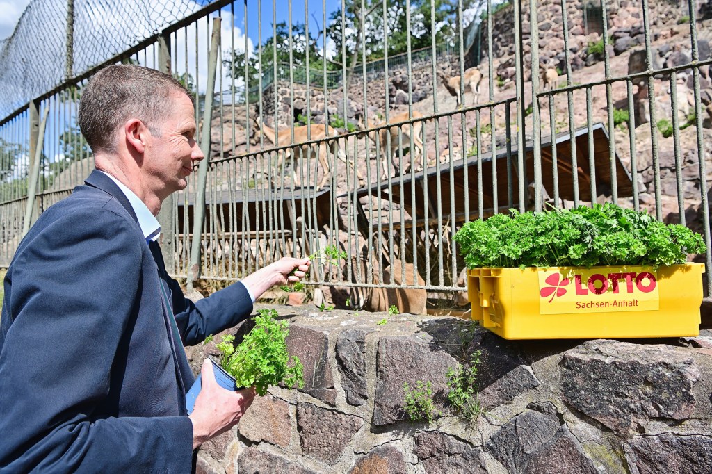 Im Rahmen der feierlichen Eröffnung des Projekts gab es noch eine weitere erfreuliche Nachricht: Die LOTTO GmbH Sachsen-Anhalt übernimmt die Patenschaft für einen Steinbock im Bergzoo. Diese Patenschaft ergänzt das angrenzende Miniwald-Umweltschutzprojekt in idealer Weise. Die Steinböcke, so scheint es, zeigten sich von der Wichtigkeit dieser Patenschaftsübernahme überzeugt, indem sie die frisch servierte Petersilie mit sichtlichem Genuss verspeisten.