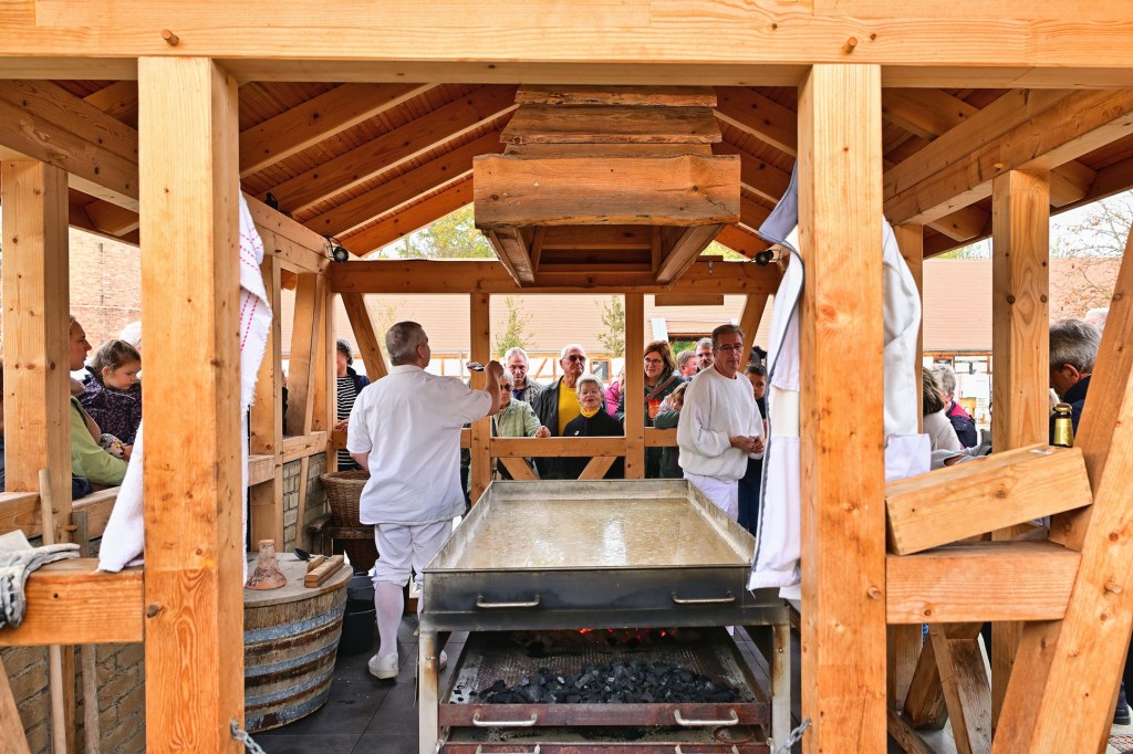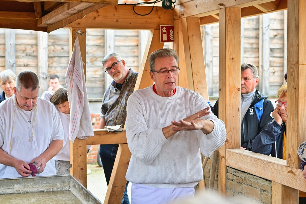 Während der Veranstaltung auf dem Areal der Saline konnten Besucherinnen und Besucher das sogenannte „Pfannensieden“ beobachten, eine alte Methode der Salzgewinnung, bei der die Sole in großen Pfannen erhitzt wird, bis das Wasser verdampft und nur das Salz übrig bleibt. Die Halloren erklärten dabei die einzelnen Schritte des Siedeprozesses und gaben spannende Details zu den Ursprüngen und Entwicklungen der Salzherstellung preis. Die aufmerksamen Zuschauer erfuhren, dass Halle nicht nur durch das Salz, sondern auch durch die Hallorenbrüderschaft eine besondere historische Bedeutung hat. Für viele Gäste war es faszinierend, einen so eng mit der Stadtgeschichte verbundenen Arbeitsprozess aus erster Hand zu erleben.