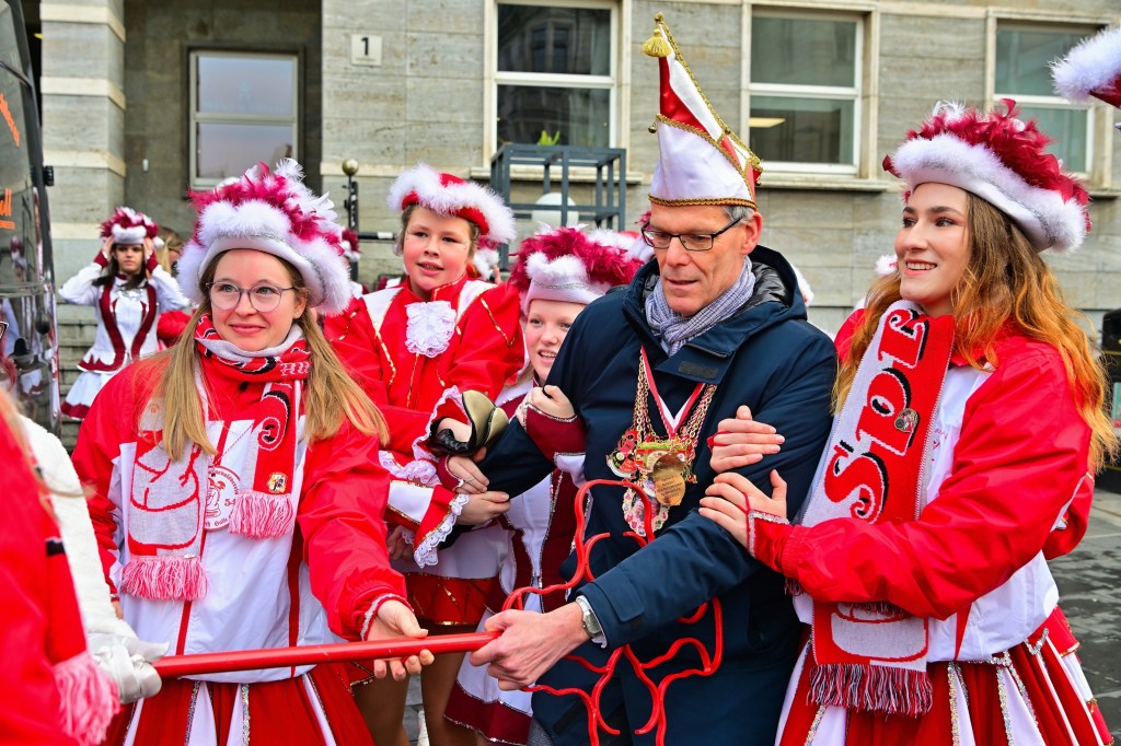 Mit einem kräftigen „Helau“ und „Alaaf“ hat heute die Karnevalssaison in Halle (Saale) offiziell begonnen. Traditionell wurde das Rathaus von den Narren übernommen, und Bürgermeister Egbert Geier musste sich dem energischen Ansturm geschlagen geben. Trotz aller Versuche, den symbolischen Schlüssel der Stadt zu verteidigen, musste Geier letztlich kapitulieren und übergab die Regentschaft an das frisch gekrönte Stadtprinzenpaar: Prinz Lars I. und Prinzessin Nancy I. „Ab heute herrschen wir über Halle, Merseburg und die gesamte Region“, verkündete Prinz Lars I. mit einem verschmitzten Lächeln. Seine Prinzessin ergänzte: „Wir freuen uns auf eine wundervolle Session voller Freude und Gemeinschaft!“