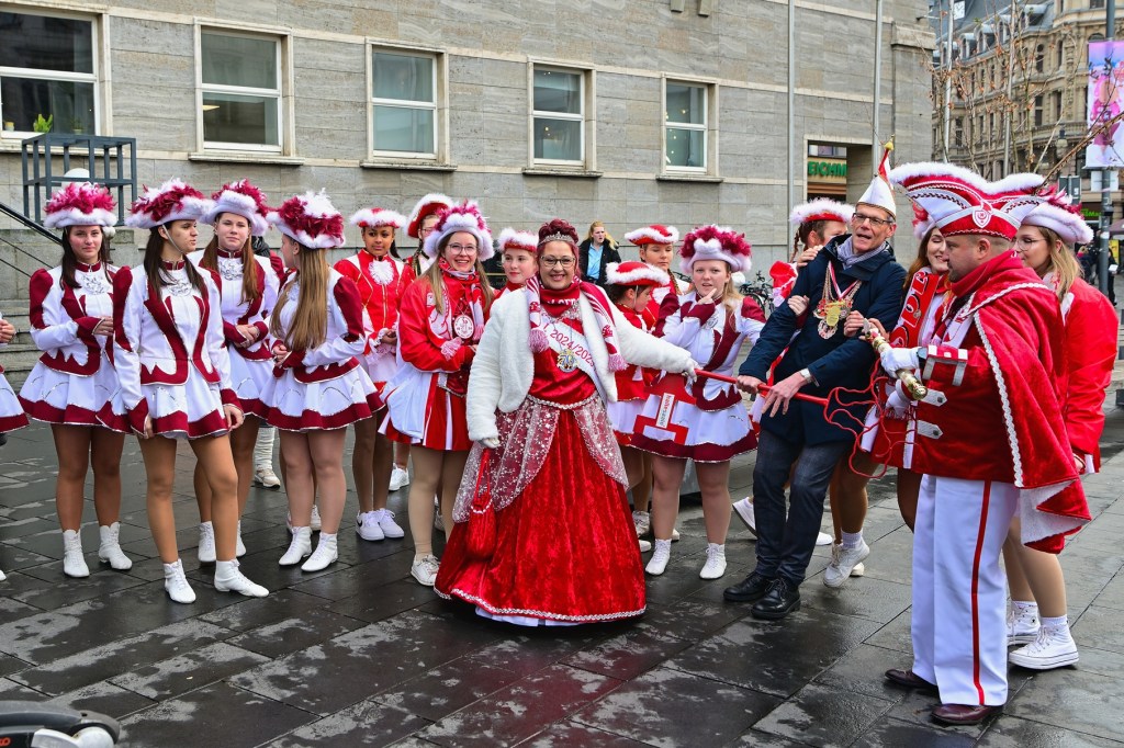 Mit der Übergabe des Schlüssels an das Prinzenpaar übernahmen die Narren symbolisch die Herrschaft über Halle. Prinzessin Sandy I. und Prinz Lars I. nahmen den eroberten Schlüssel unter großem Jubel entgegen. Die närrischen Regenten versprachen, die kommenden Wochen mit zahlreichen Veranstaltungen zu bereichern und die fünfte Jahreszeit ausgiebig zu feiern.