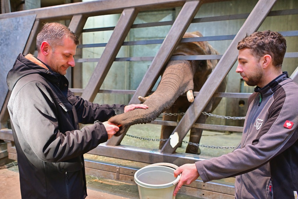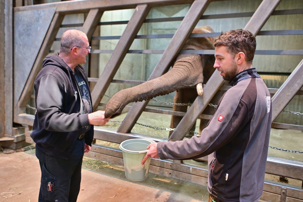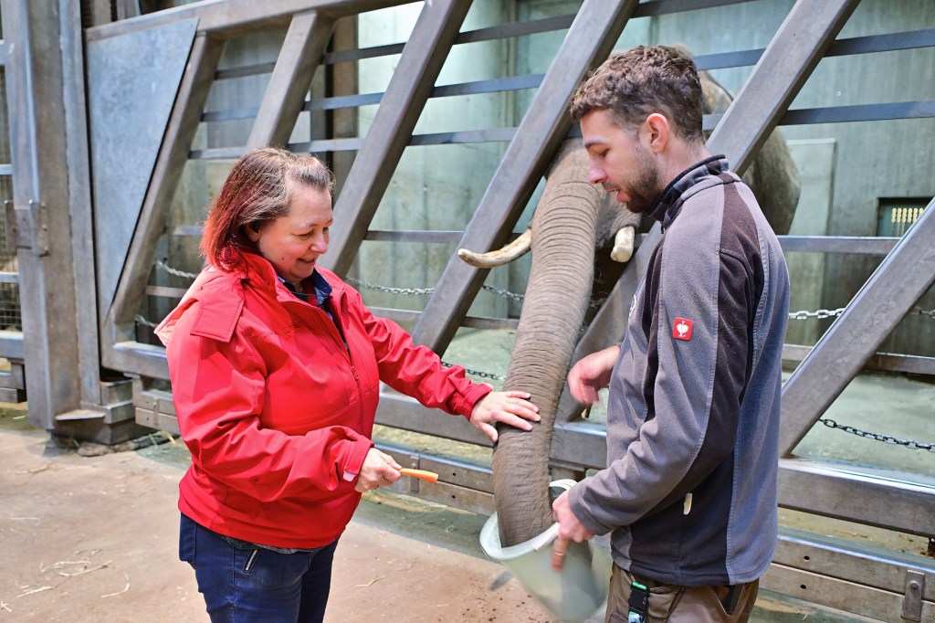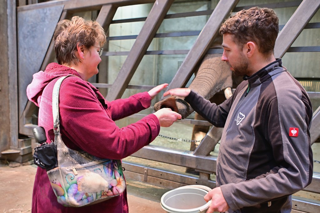 Der heutige Termin bot den Mitarbeiterinnen der REWE-Märkte eine besondere Gelegenheit, den Elefanten hautnah zu begegnen. Im Rahmen der Patenschaftsübergabe überreichten sie TANA persönliche einige „Leckerli“. Für viele war die Nähe zu den beeindruckenden Wildtieren ein emotionales Erlebnis, das sicher lange in Erinnerung bleiben wird. Die Kombination aus tierischer Begegnung und sozialem Engagement macht die Patenschaft für die Mitarbeiter zu einem ganz besonderen Ereignis.