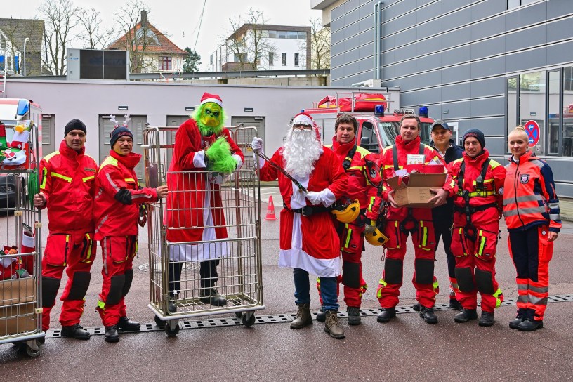 Das ist sicher nicht alltäglich, was die kleinen Patienten der Kinderstation im Universitätsklinikum Kröllwitz zu sehen bekommen. Es ist eben bald Weihnachten und da kommt der Weihnachtsmann, begleitet vom Grinch als Überraschung auch schon mal vom Dach. Professionell wurde die Aktion von den Höhenrettern der Berufsfeuerwehr Halle durchgeführt, wobei die Sicherheit absolute Priorität hatte.