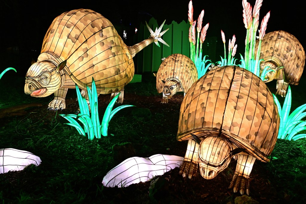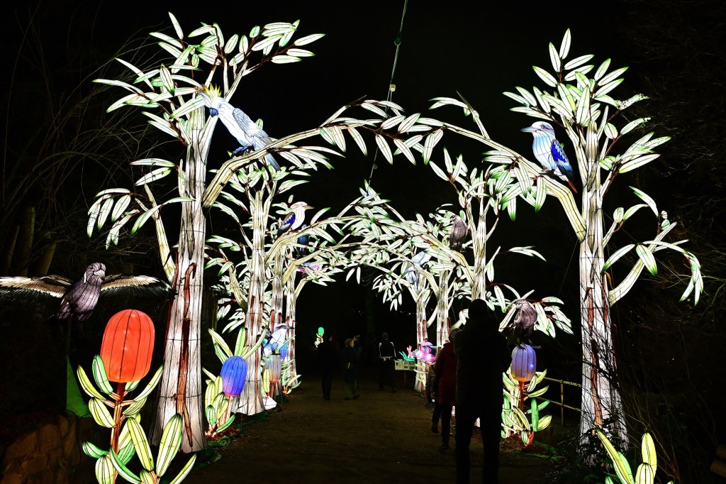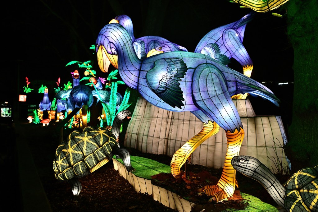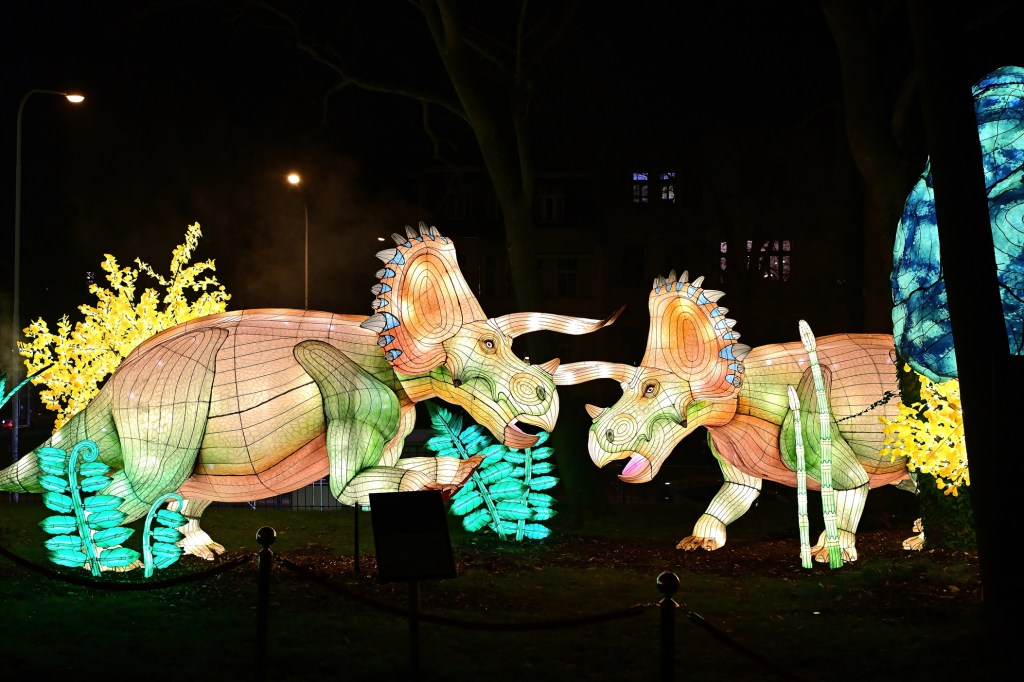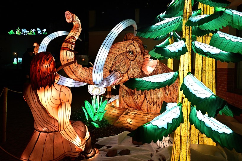 Die beeindruckenden Lichtinstallationen wurden von chinesischen Lichtkünstlern gestaltet und in wochenlanger Arbeit auf dem Zoogelände aufgebaut. Die Mischung aus kleinen, detailreichen Lichtfiguren und monumentalen Darstellungen von Dinosauriern und Mammuts bringt das Thema „Die Rückkehr der Giganten“ eindrucksvoll zum Leben. Besonders in der Dunkelheit entfalten die Figuren ihre volle Strahlkraft, und die leuchtenden Farben schaffen eine magische Atmosphäre.
