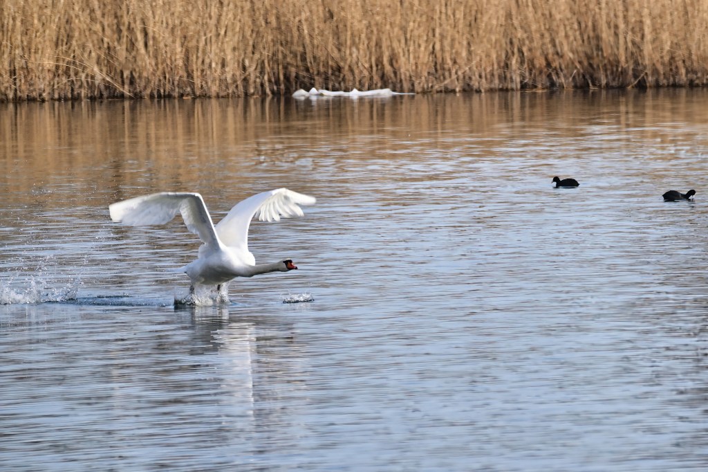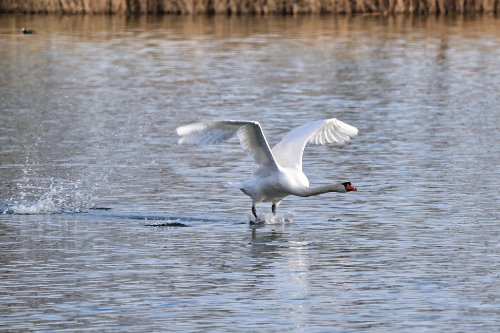 Immer sehenswert, wenn ein Schwan abhebt.