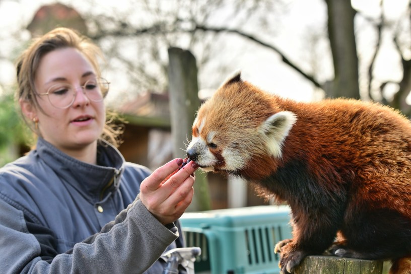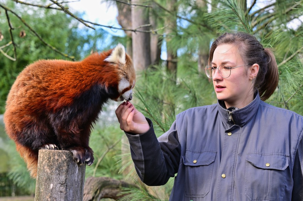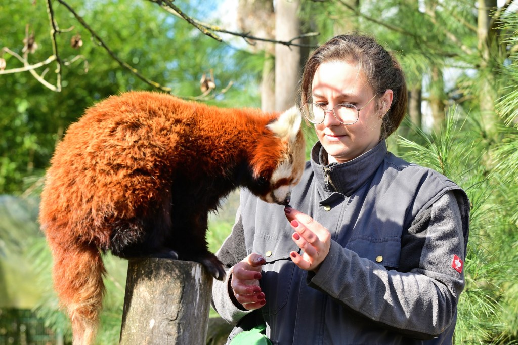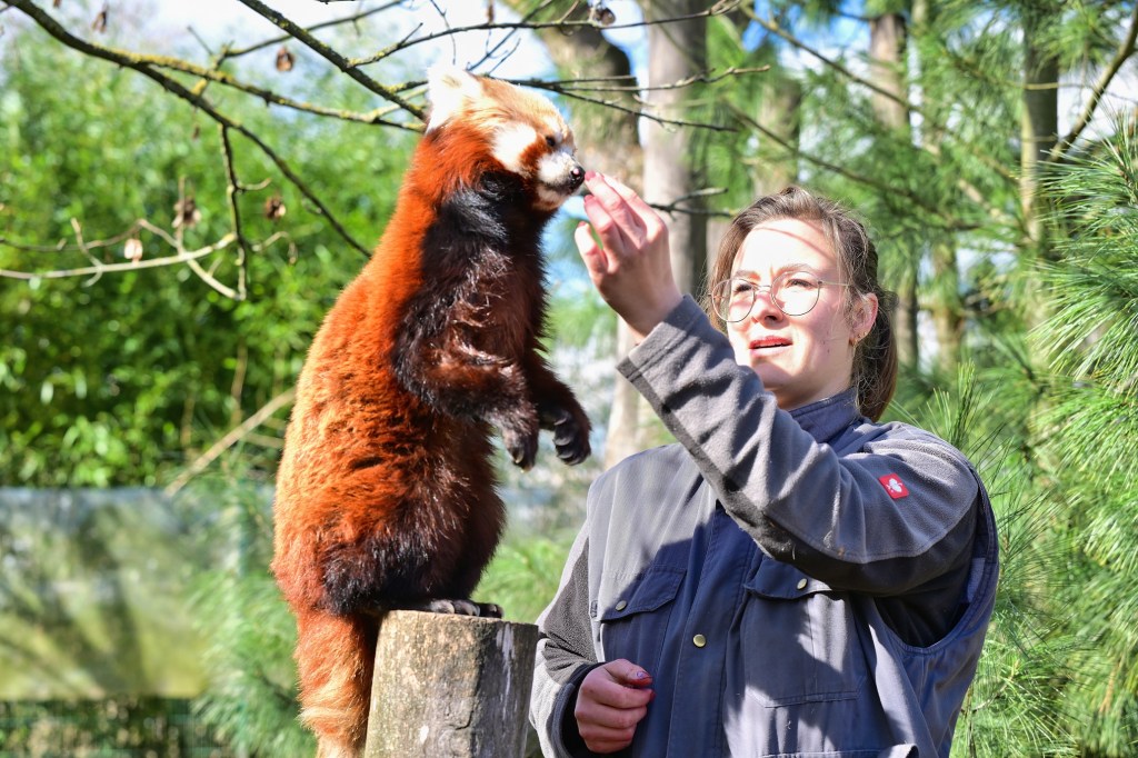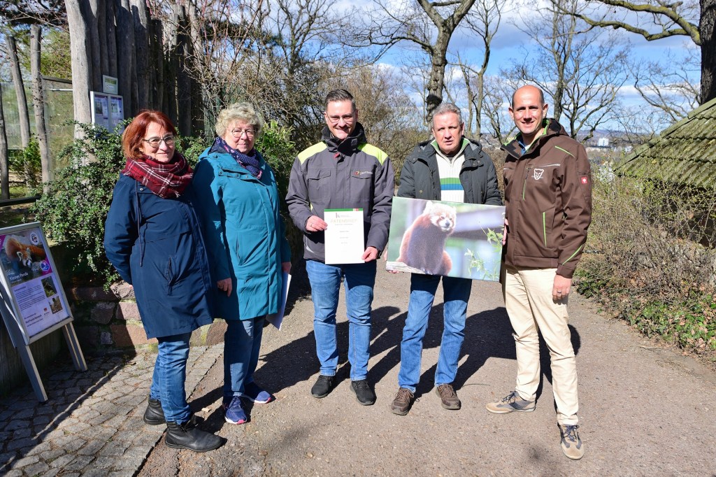 „Wir haben schon durch einige Projekte hier im Zoo, z. B. durch die Errichtung von Zäunen, einen Beitrag geleistet und wollten unser Engagement noch ein bisschen vertiefen“, erklärte Maik Sander, Standortleiter der Firma Zaun-Team: „Wir haben schon im letzten Jahr die Patenschaft für die Roten Pandas übernommen und durften auch schon hautnah das Training erleben.“