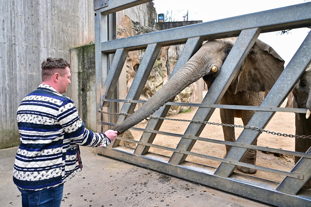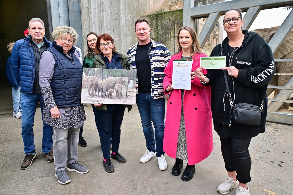 Das Elefantenhaus im Bergzoo Halle war heute wieder Schauplatz einer besonderen Zeremonie: Das „Therapiezentrum -, Förder- und Familienzentrum“ aus Halle hat zum dritten Mal in Folge die Patenschaft für Elefanten-Leitkuh Pori übernommen. Die Elefanten-Kuh, bekannt als Oma von Tamika, Elani und Simon, freute sich vor allem über die mit der Patenschaft verbundenen Leckerlis.