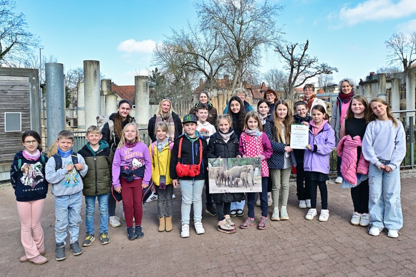 Der Zoo Halle hat einen neuen Paten für seinen kleinen Elefantenbullen Simon. Vertreterinnen und Vertreter der Grundschule Diemitz/Freiimfelde besuchten heute den Zoo, um offiziell die Patenschaft zu übernehmen. Die Kinder der Schule hatten im Rahmen eines Benefizlaufs Geld gesammelt, um Simon zu unterstützen.