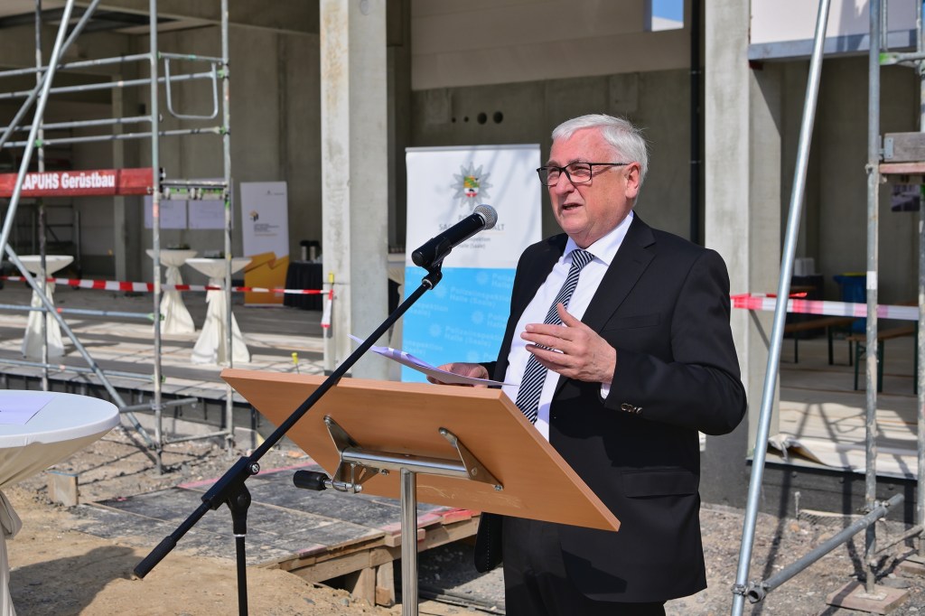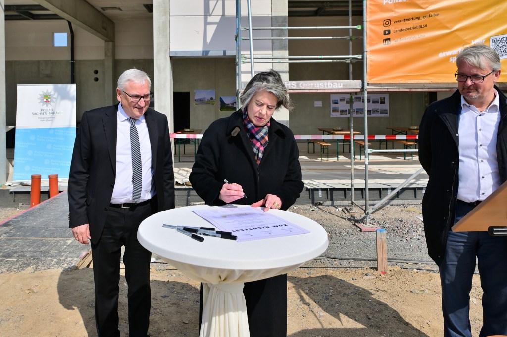 Finanzminister Richter hob die Bedeutung des Projekts als eine der großen und aktuellen Baumaßnahmen des Landes für die Polizei hervor. Er dankte dem Landesbetrieb Bau- und Liegenschaftsmanagement Sachsen-Anhalt (BLSA) und allen am Bau Beteiligten für ihre engagierte Arbeit.