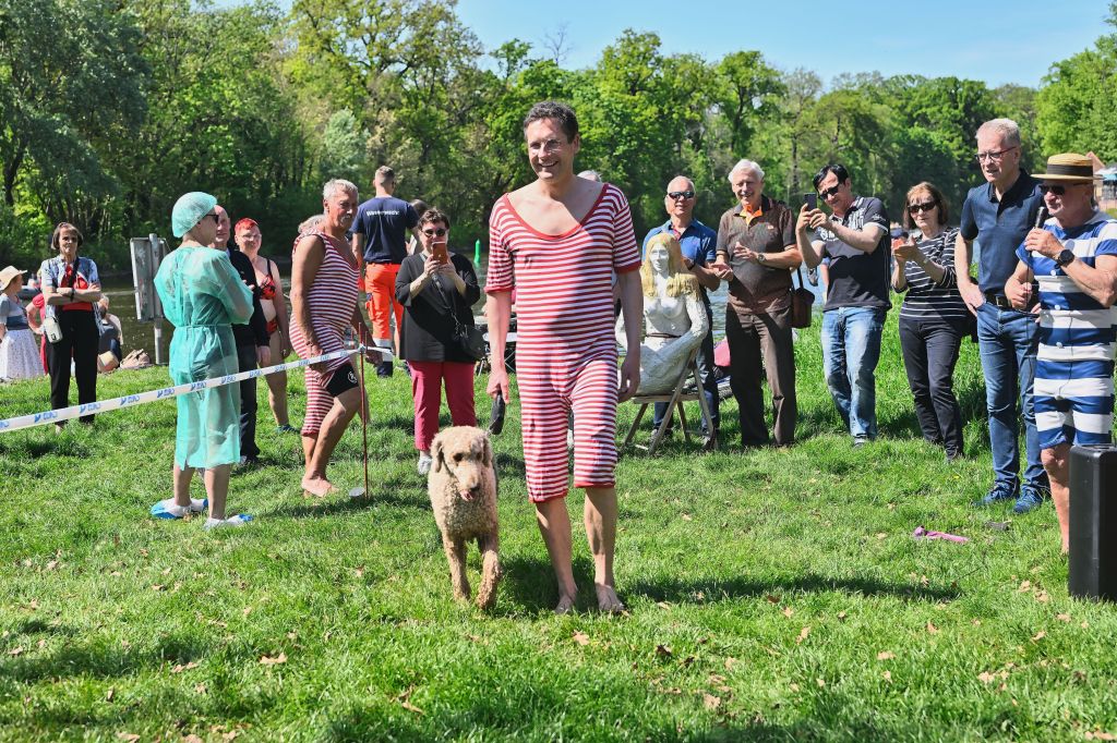 Bevor es jedoch ins kühle Nass ging, stand ein weiterer Höhepunkt auf dem Programm: die traditionelle Kür des „Schönsten Badekostüms“ durch das Publikum und das anschließende Wassertreten. Diese Ehre wurde in diesem Jahr dem frisch gewählten Oberbürgermeister der Stadt, Dr. Alexander Vogt, zuteil. Er wurde kurzerhand per Akklamation zum stilistischsten Schwimmer des Tages ernannt und übernahm im Anschluss die ehrenvolle Aufgabe, die Teilnehmer mit ein paar ermutigenden Worten auf ihren kurzen Schwimmtrip einzustimmen.