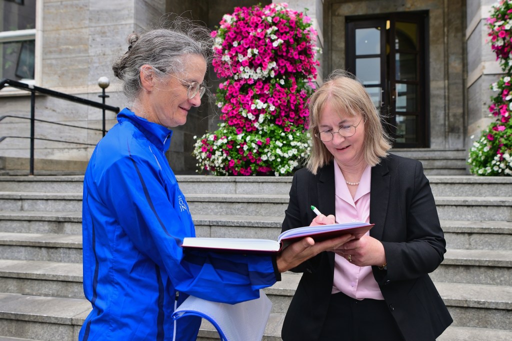 Das Läuferteam, bestehend aus engagierten Freiwilligen aus verschiedenen Ländern, die für die Etappen ihre normalen Tätigkeiten unterbrechen, wurde in Halle herzlich begrüßt. Vor dem Ratshof kam es zu einem freimütigen und freundlichen Gespräch und Gedankenaustausch zwischen den Läufern und den Vertretern der Stadt. Dabei wurden Erinnerungsgeschenke ausgetauscht und ein kleines „Ständchen“ dargeboten, das die verbindende Kraft des gemeinsamen Anliegens unterstrich.
