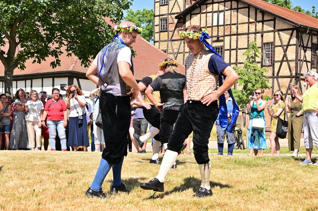 Danach stand das spektakuläre „Fahnenschwenken“ im Mittelpunkt, gefolgt vom „Zappeltanz“. Hierbei geht es nicht um ästhetische Choreografie, sondern um Geschick und Standfestigkeit. Das Ziel: den „Zappeltanz-Partner“ mit geschicktem Beinhakeln aus dem Gleichgewicht und zu Fall zu bringen. Wer am Ende der Prozedur noch auf beiden Beinen stand, gilt als Sieger – eine unterhaltsame Demonstration von Kampfgeist und Kameradschaft.
