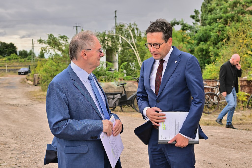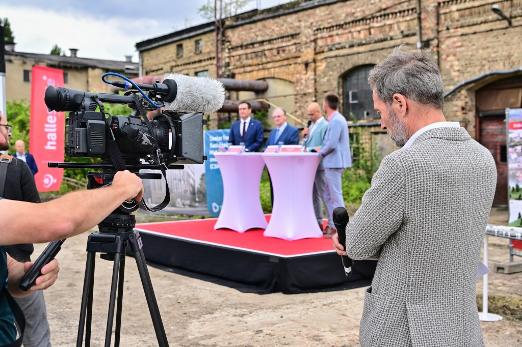 Halle nimmt Fahrt auf in seiner Transformation zur innovativen Wissens- und Wirtschaftsmetropole. Heute Vormittag überreichte ein sichtlich gut gelaunter Ministerpräsident Dr. Reiner Haseloff auf dem geschichtsträchtigen Gelände des ehemaligen Reichsbahnausbesserungswerks (RAW) die mit Spannung erwarteten Fördermittelbescheide für zwei wegweisende Strukturwandel-Großprojekte. Insgesamt rund 203 Millionen Euro fließen in den kommenden Jahren in die Revitalisierung des ehemaligen RAW-Areals und den Bau des Forschungsgebäudes „Center for Sustainable Materials and Energy“ (CSME) auf dem Weinberg-Campus.