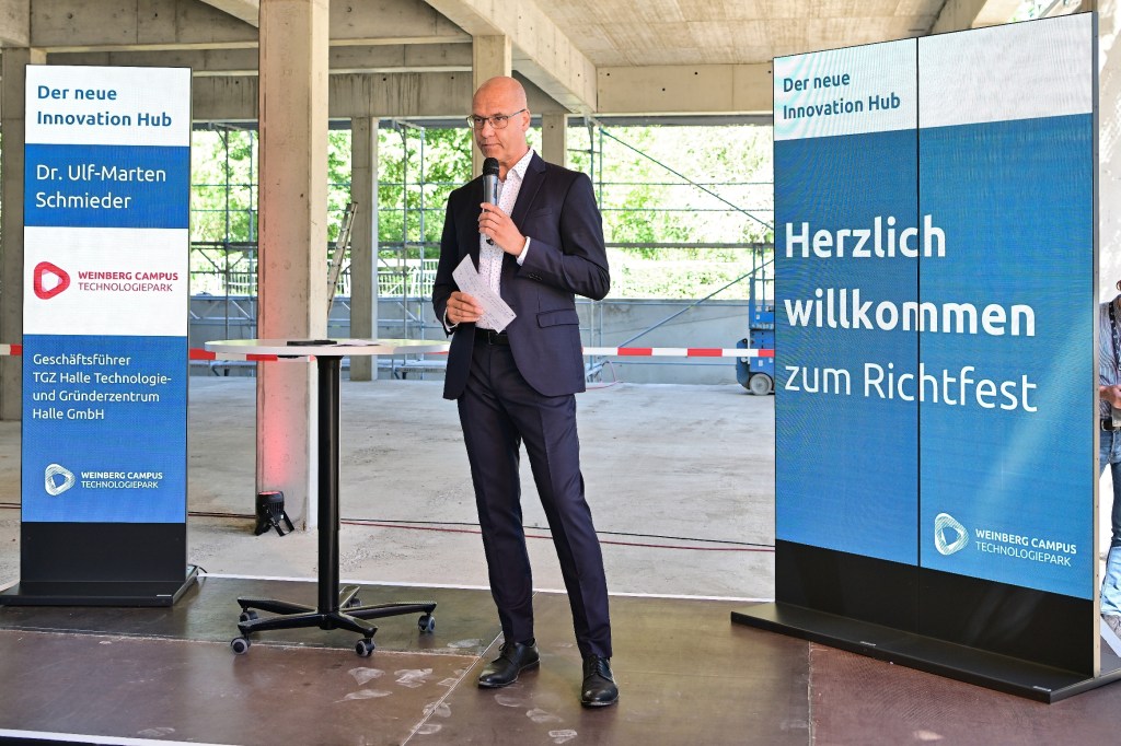 An der feierlichen Zeremonie nahm auch Bürgermeister Egbert Geier in Vertretung des Oberbürgermeisters teil. In seinem Grußwort betonte er die Bedeutung des wachsenden Geländes als „fruchtbares Start-up-Ökosystem“. Die Erweiterung sei ein wichtiger Impulsgeber für eine prosperierende regionale Wirtschafts- und Wissenschaftslandschaft. „Der Stellenwert des Weinberg Campus ist für die Stadt Halle (Saale) und das Land Sachsen-Anhalt bereits jetzt immens. Er wird in den nächsten Jahren noch erheblich steigen“, so Geier.