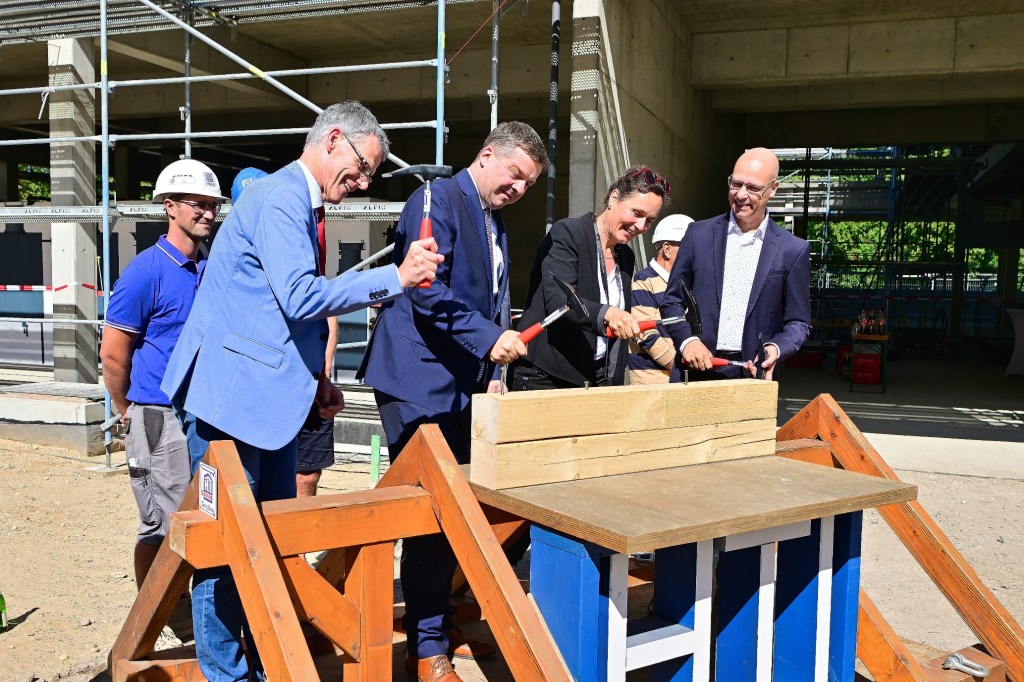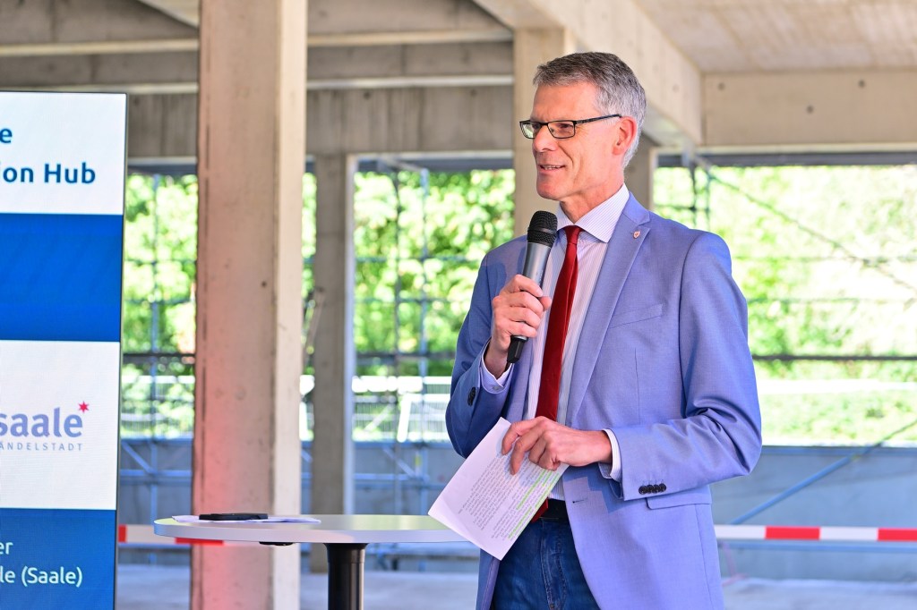 Ein Zeichen für die Zukunft der halleschen Innovationslandschaft: Auf dem Weinberg Campus wurde heute das Richtfest für den Erweiterungsbau des Innovation Hub gefeiert. Das Projekt, das den Technologiestandort weiter stärken soll, wurde mit traditionellem Aufziehen der Richtkrone und dem Einschlagen des letzten Nagels gewürdigt. Es entsteht ein hochmodernes Innovations- und Gründerzentrum, das sich auf die Bereiche „Digital Health and Smart Green Technologies“ fokussiert.