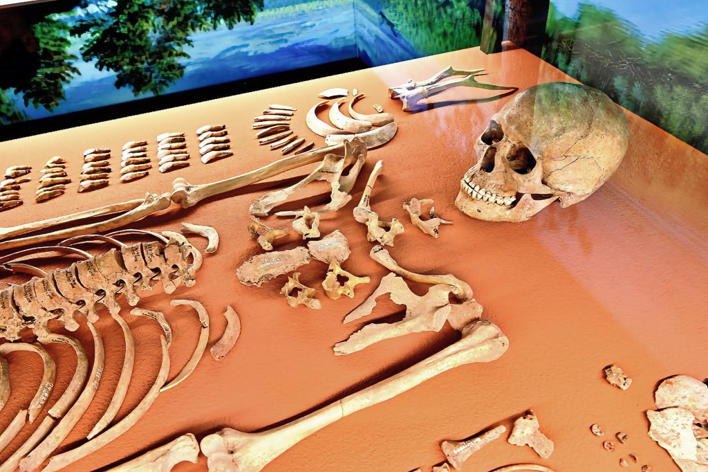 Das Grab der Schamanin von Bad Dürrenberg (Saalekreis), datiert auf etwa 9.000 Jahre in die Mittelsteinzeit (Mesolithikum), gilt als einer der spektakulärsten archäologischen Funde Mitteleuropas. Neue Untersuchungen des 1934 entdeckten und 2019 als Block geborgenen Grabes haben jetzt eine sensationelle Erkenntnis geliefert: Die Bestattete trug wohl einen aufwendigen Kopfschmuck aus Federn.