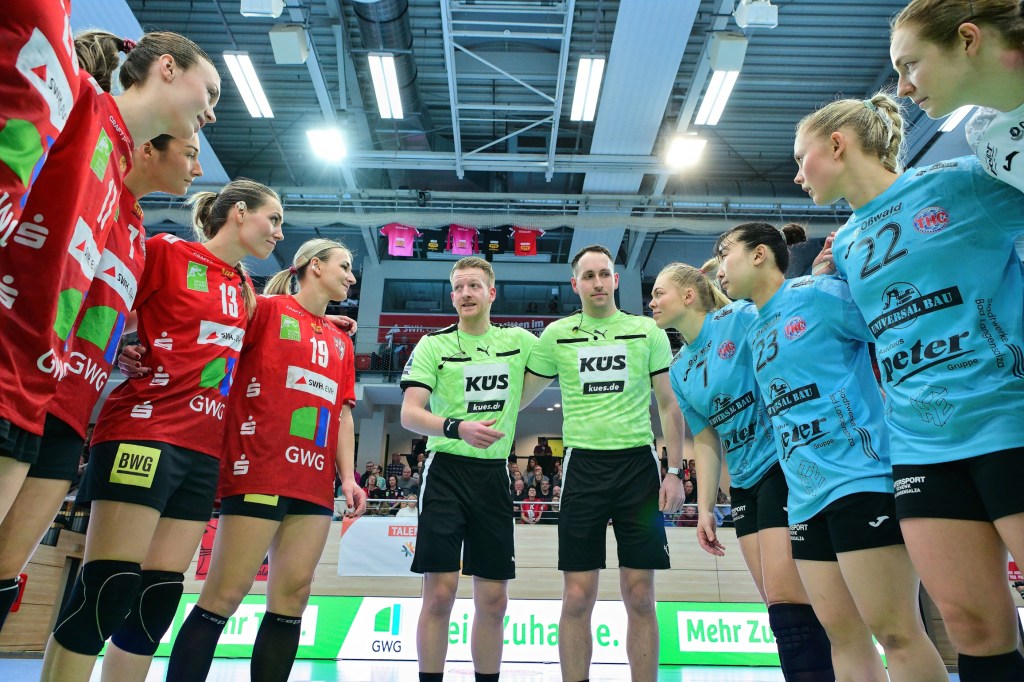 Es war ein spannender Handball-Abend gestern in der SWH.arena. Vor 980 begeisterten Zuschauern boten der SV UNION Halle-Neustadt und der Thüringer HC ein temporeiches Offensiv-Spektakel, das am Ende einen verdienten, wenn auch hart erkämpften Sieger fand. Mit einem 43:36 (24:15)-Erfolg unterstreicht der Thüringer HC seine Ambitionen in der Alsco Handball Bundesliga Frauen und festigt seinen vierten Tabellenplatz.