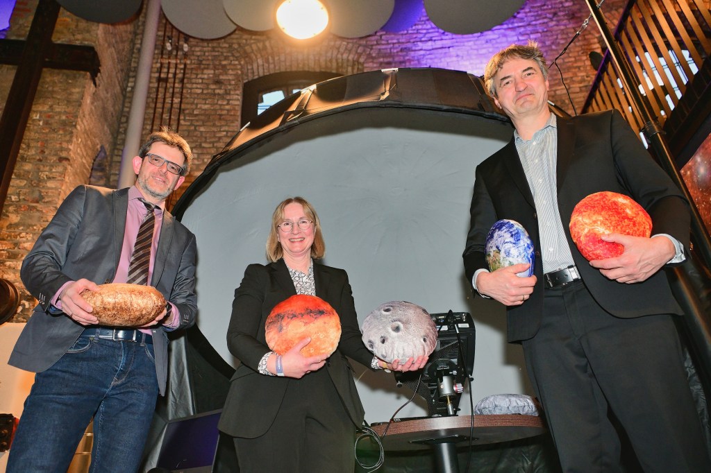 Das Herzstück der Eröffnung bildete die Show im Sternensaal. Dirk Schlesier, Leiter des Planetariums sowie Matthias Lux, Vorstand der Stadtwerke Halle, beide als „Intendanten der Themenjahre“, blickten in ein Foyer, das aus allen Nähten platzte. Der Andrang war gewaltig, die Stimmung gelöst.