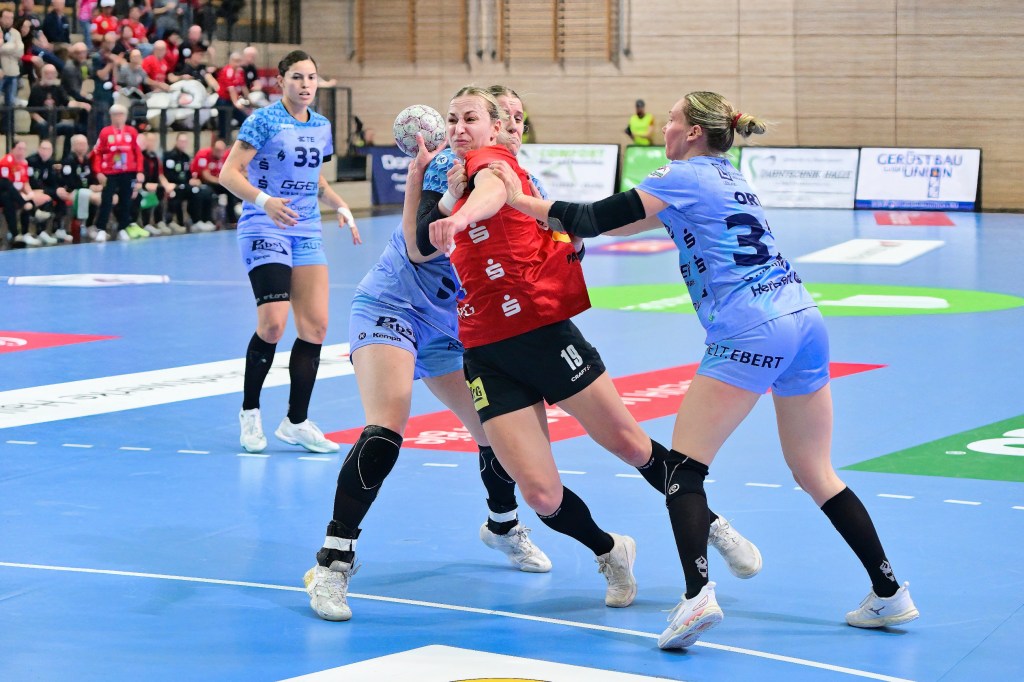 Doch die „Flames“ aus Bensheim demonstrierten im weiteren Verlauf der ersten Halbzeit, warum sie zur Elite der Liga gehören. Mit zunehmender Spieldauer fanden die Gäste zu ihrer Abgeklärtheit zurück. Halle hingegen leistete sich erste Ungenauigkeiten, die ein Team vom Kaliber der HSG eiskalt bestraft. Mit einem 17:20-Rückstand aus Sicht der Hallenserinnen ging es in die Kabinen – ein Dämpfer, der die Moral jedoch keineswegs brach.
